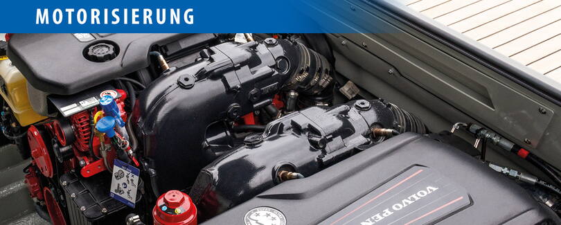 - Motorenanlage mit 2 Volvo Penta V8 Motoren: Gesamtleistung von 760 PS (2 x 380 PS) bis 860 PS (2 x 430 PS), individuelle Motorisierungen auch anderer Hersteller sind auf Anfrage erhältlich