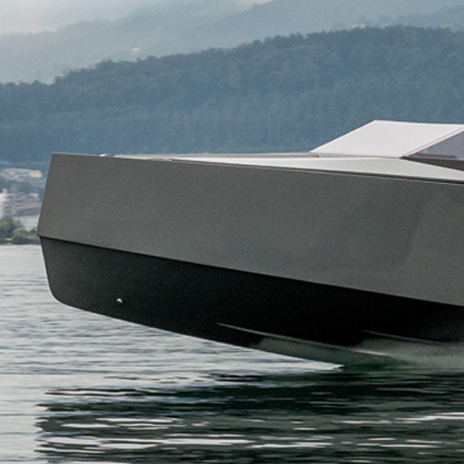 Die extreme Keilform und eine optimierte Bauweise tragen dazu bei, dass das Boot auf dem Wasser beinahe wie auf Schienen fährt und Sie Ihre Yacht auch bei extrem hohen Geschwindigkeiten jederzeit problemlos unter Kontrolle halten können.