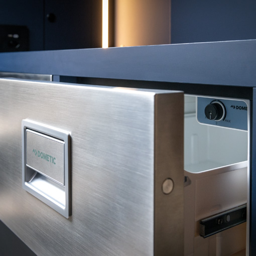 Zwei Schubladenkühlschränke, eine leistungsfähige Stromversorgung und viele technische Highlights sorgen auch in der Kabine für maximalen Komfort.